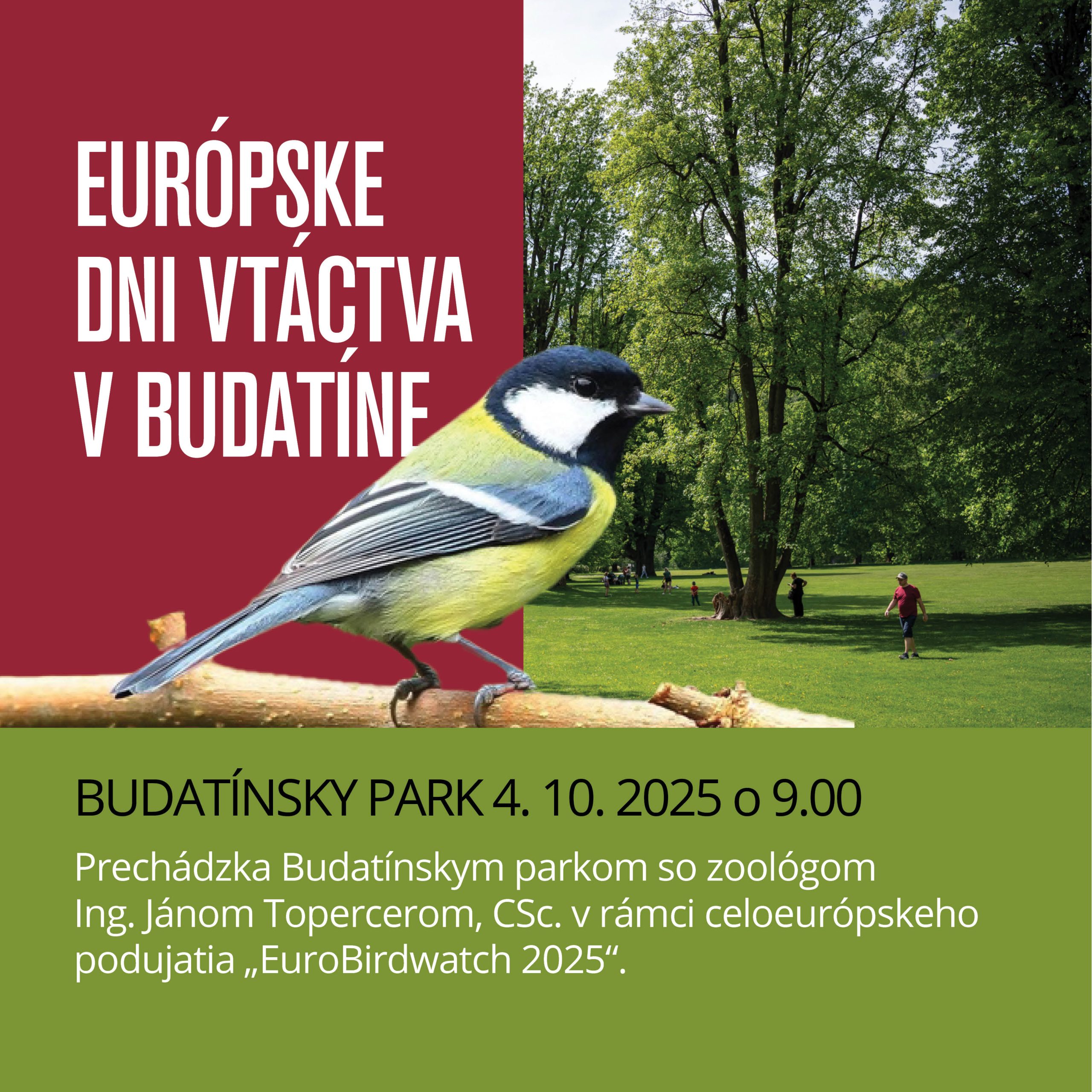 Podujatie bude jedným z mnohých v rámci tohtoročných „Európskych dní vtáctva“.  V spolupráci so SOS/BirdLife Slovensko a BirdLife International ho pripravuje zoológ Ing. Ján Topercer, CSc. a nadviaže ním na svoj jarný vychádzkový seriál Ranné budatínske zvukobranie. Počas dôkladnej obchôdzky parku sa budú záujemcovia snažiť zachytiť čo najviac prítomných druhov a jedincov vtákov. Zraz bude pri hlavnom vchode do Budatínskeho parku o 9.00 hod.